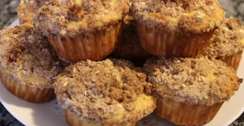 Яблочные маффины Необходимые продукты Начинаем приготовление В глубокую чашку просеиваем муку, добавляем соль, разрыхлитель, коричневый сахар и овсяные хлопья. Все хорошо перемешиваем. В массу добавляем кусочки сливочного масла и перетираем смесь руками до образования крошки. Откладываем в сторону 125 мл. получившейся смеси и добавляем корицу с мускатным орехом, перемешиваем. В чашку натираем яблоки, добавляем к ним яйца и молоко, хорошо перемешиваем. Получившуюся массу переливаем в сухую смесь и перемешиваем. Берем форму для маффинов и заполняем тестом. И присыпаем маффины посыпкой из отложенной сухой массы. Выпекаем кексы в духовке, разогретой до 200 градусов. В течение 20-25 минут. Готовые маффины остужаем и подаем к столу.