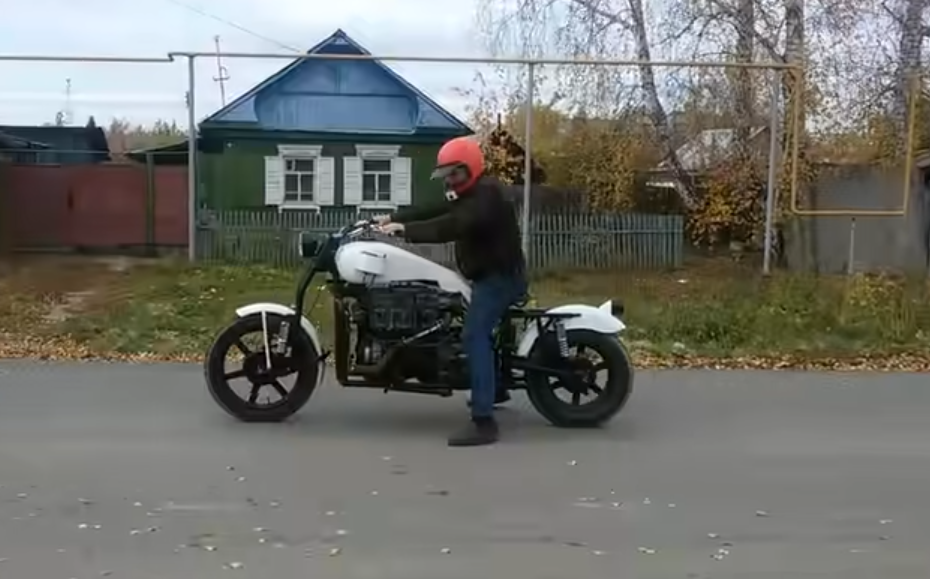 Всем привет !!! Сегодня я хочу рассказать об кулибиных которые сделали из машин мотоциклы и так приступим. Начать статью я хочу с Ильдара Сунагуллина. Он поставил на мотоциклетную раму, двигатель от ваз 2109. Коробку и мост он поставил от мотоцикла Урал. Соединил через переходную плиту с двигателем. Коляска к мотоциклу не цепляется, но зато какая мощность у этого монстра он замерял скорость до ста с пробуксовкой заднего колеса составляет 8 секунд на 3 передаче и то в пол газа, а почему он не замерил какую он вообще развивает скорость просто становиться страшно дальше третьей передачи он и не выжимал. Если Бы заводы принадлежали таким людям, мы бы ездили на самой лучшей технике не большая подборка местных изобретателей . А это детище изготовил человек из Владимира . Двигатель на нем стоит от ГАЗ -53 8 цилиндровый монстр объем двигателя 5 л и 200 л. с разгон до 100 этот мотоцикл развивает за 2 секунды со слов владельца он разгонял его до 200 км в час . Вот такие мес