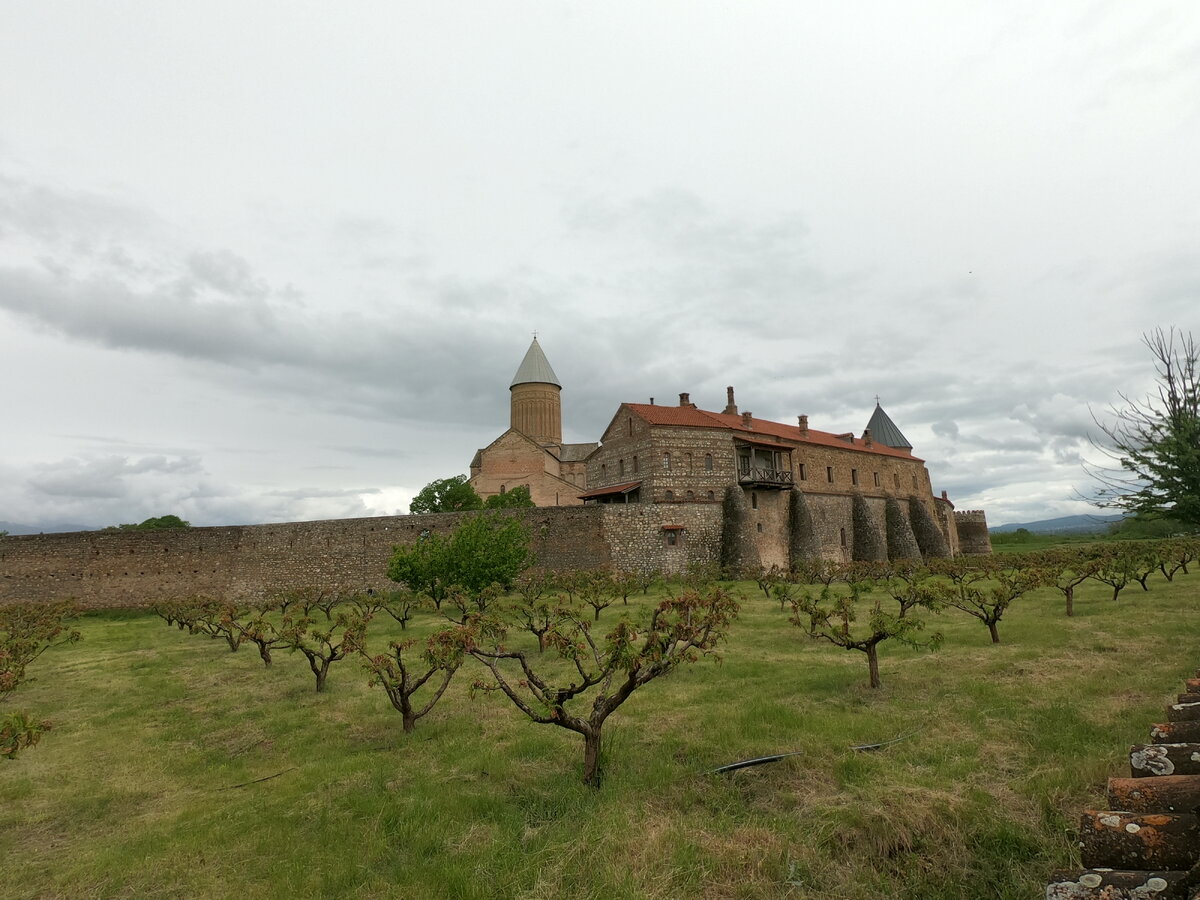 Монастырь Некреси является древнейшим монастырём Грузии (4 век), расположился он на горе над Алазанской долиной, собственно ради видов мы туда и заскочили Виды, конечно, ЧУМОВЫЕ: с одной стороны яркими красками раскинулась долина, с другой-высоченные "пушистые" горы. Но насладиться этой красотой удалось лишь 15 минут. Оказалось, что именно в этот день проходил какой-то марафон бегунов и должны были перекрывать кусок дороги до Телави. Втопив по газам по полной, мы погнали вперёд, с надеждой, что успеем проскочит