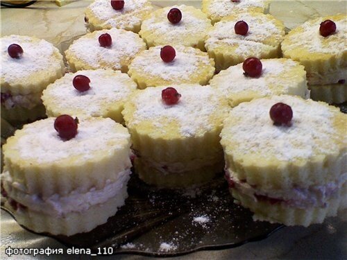 Бисквитик смазать сливками,накрыть другим,посыпать сахарной пудрой и украсить по желанию.