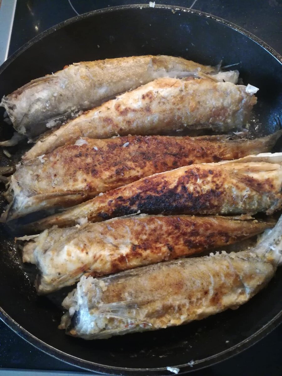 Пожарить рыбу-дело не хитрое, известно всем, но бывают нюансы. Однажды свекор принес нам жереной трески в исполнении моей свекрови и девчонки смолотили её в один присест. Я успела попробовать маленький кусочек, но этого хватило, чтобы оценить вкусную рыбку. Я сразу позвонила свекрови и поинтересовалась, в чем же секрет. Она с удовольствием со мной поделилась, а я, в свою очередь делюсь с вами. Итак, поехали! Нам понадобится: рыба винный уксус лимон орегано соль мука Способ приготовления: Рыбку моем, потрошим и отрезаем голову. помещаем в тазик (желательно плоский) посыпаем хорошенько солью и орегано, поливаем лимонным соком (на 6 рыбок у меня ушел один лимон и где-то 2 ст.л. винного уксуса). Оставляем на полчаса. Далее каждую рыбку обваливаем в муке И обжариваем на достаточном количестве масла до золотистой корочки с двух сторон. Сначала делаем сильный огонь (чтобы образовалась корочка), потом не забывааем его уменьшить и дожариваем под крышкой. Жарится рыбка очень быстро, около 15 м