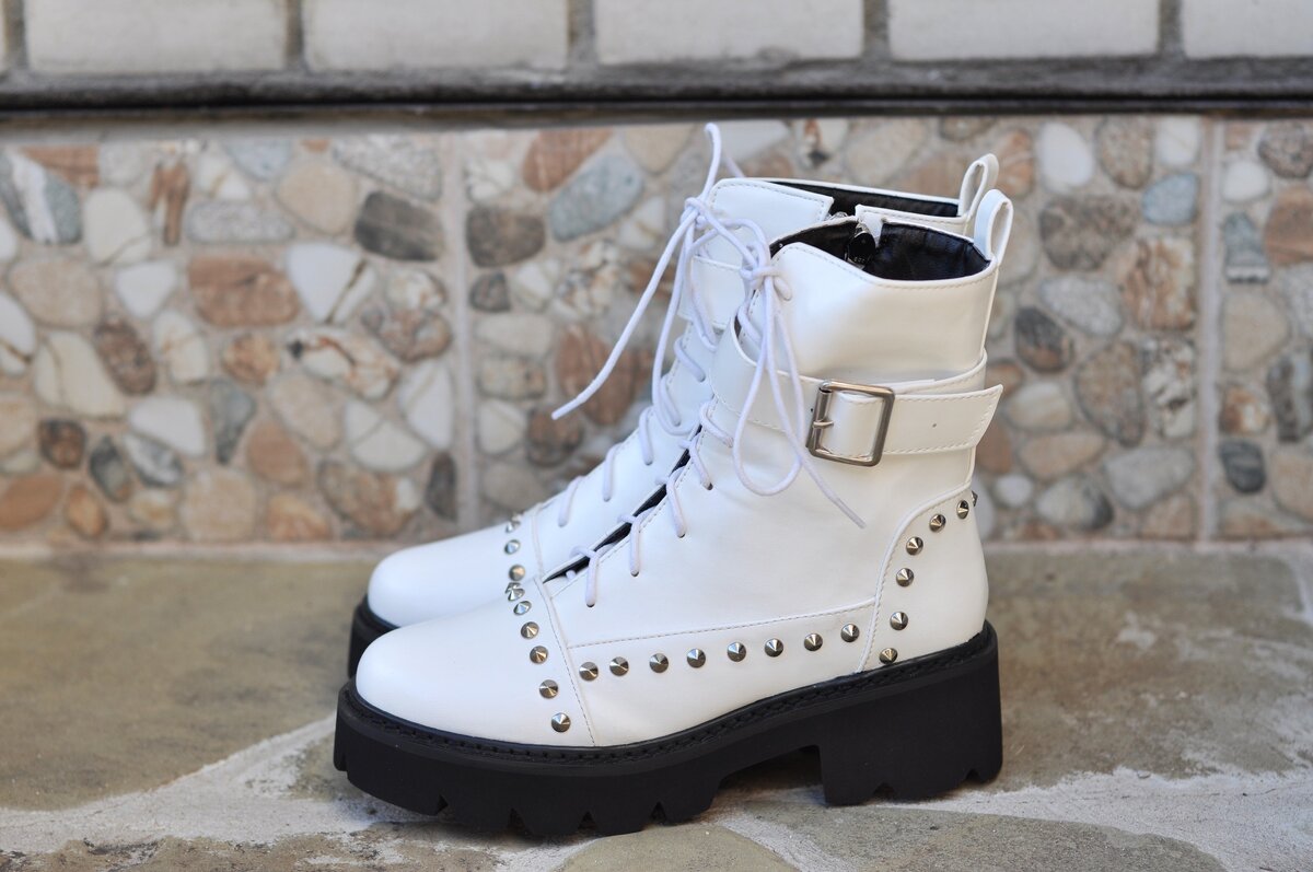 Моя коллекция осенней обуви пополнилась этими крутыми белоснежными ботильонами, декорированными заклёпками, на массивной контрастной подошве, благодаря которой их можно носить и в дождь, и в грязь, и в слякоть. Кстати, у продавца такие есть ещё в чёрном цвете, в осеннем и зимнем варианте на меху. Я взяла осенние. Доставка длилась 4 недели. Трек номер отслеживался. Упаковка: почтовый пакет, пакет с воздухом, пыльники, внутри ботинок был бумажный наполнитель. Таким образом, при транспортировке они не помялись. Размер выбирала по таблице. На свой 36 размер заказала размер 5, и он идеально подошёл! Ссылка на товар: http://s.click.aliexpress.com/e/FTwyv9tq На подошве присутствовал логотип бренда TAOFFEN. Кстати, очень хороший магазин, с классным ассортиментом, советую 👍 Ботильоны сделаны из плотного качественного полиуретана, он довольно жесткий на ощупь, но это никак не мешает. Внутри микрофибра, мягкая и приятная. Стелька тоже очень мягкая. Подошва резиновая, очень плотная, с крупными