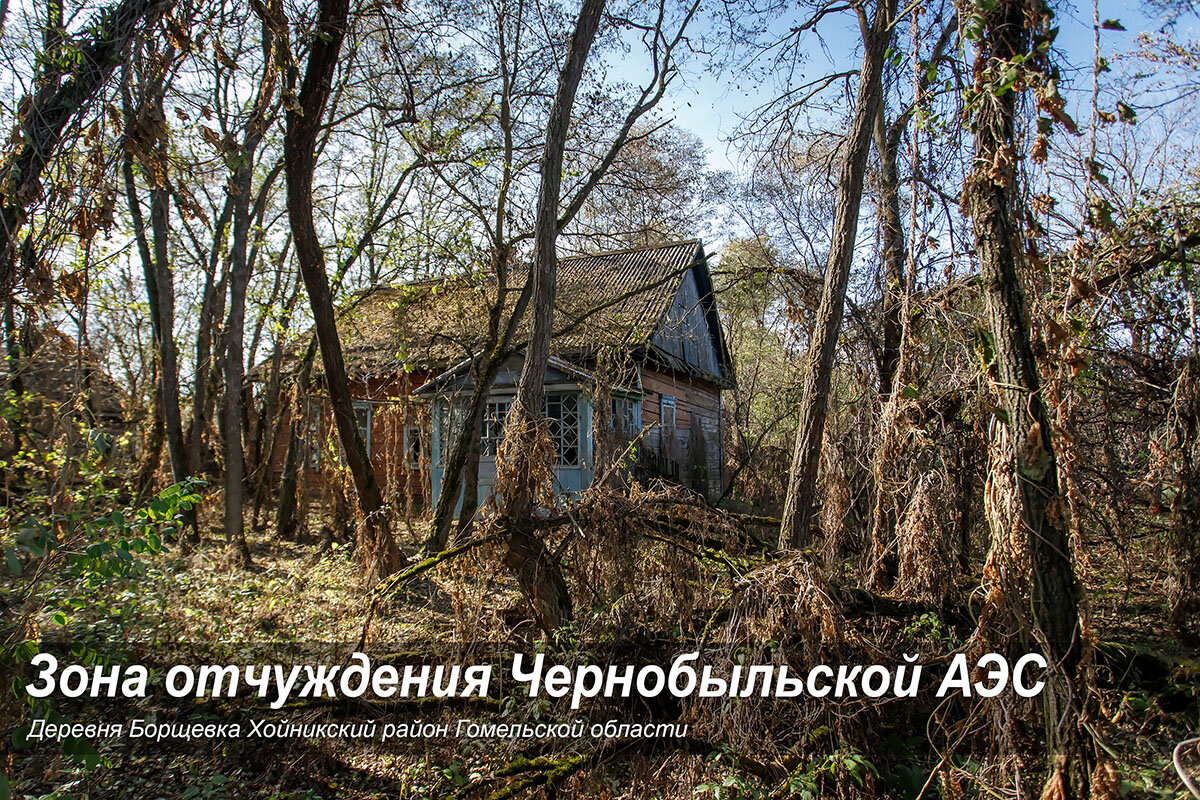 Деревня Борщевка имеет древнюю историю. Первое упоминание относится к XVI веку. В годы Великой Отечественной войны каратели полностью сожгли деревню, но она возродилась. После аварии на Чернобыльской АЭС Борщевка не возродится ближайшие несколько тысяч лет. В мае 1986 года все жители, а это 124 семьи, переселены в чистые места. Сильно загрязненные дома были разобраны и "захоронены", но что-то еще осталось. Миновав КПП в деревне Бабчин, откуда в 1986 году были выселены 194 семьи, мы въехали на территорию Полесского государственного радиационно-экологического заповедника. Заповедник создан в 18 июля 1988 года в белорусской части зоны отчуждения Чернобыльской АЭС на территории трёх наиболее пострадавших от аварии районов Гомельской области — Брагинского, Наровлянского и Хойникского. На территории находятся 96 покинутых населённых пунктов, где до аварии проживало более 22 тысяч жителей. Проживать в зоне нельзя, но изучать влияние радиации на флору и фауну можно. Сразу скажу, что двухголовы