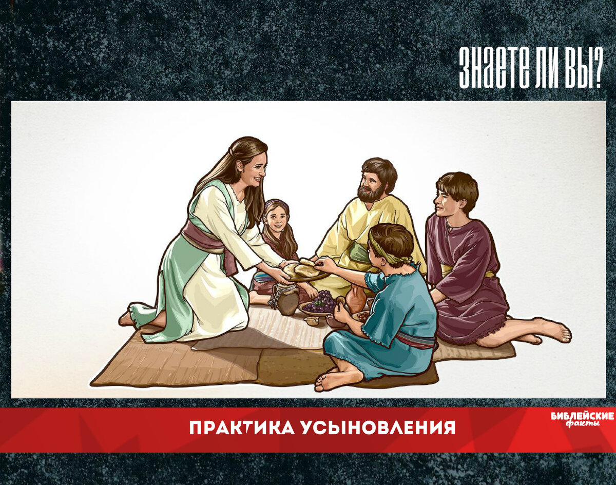 Практика усыновления была также распространена в библейские времена. Усыновление решало много проблем. Такие дети заботились о престарелых родителях и наследуя их имущество. Однако, если семья заводила собственного ребенка, то именно он становился полноправным наследником. В Библии есть примеры усыновления: Моисея усыновила дочь фараона, Есфирь - Мардохей. Библейские Факты