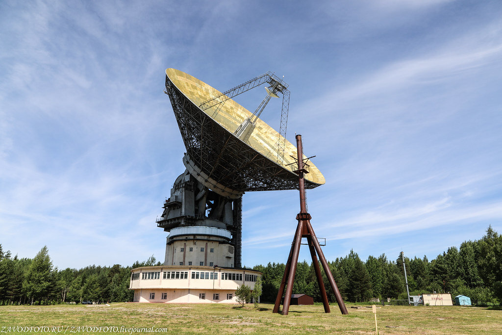 Оказавшись в Калязине, трудно не заметить три вещи: Колокольню Никольского собора, Горбатый мост и «Калязинское ухо». Именно так местные жители называют Радиотелескоп РТ-64 или ТНА-1500, который работает в рамках Калязинской радиоастрономической обсерватории. Он известен тем, что является одним из уникальных цельноповортных радиотелескопов в мире. В России и СНГ их всего семь подобных. Но давайте обо всё по порядку. Калязинская радиоастрономическая обсерватория (ранее Центр космической связи Особого Конструкторского Бюро МЭИ «Калязин», сокращённо ЦКС ОКБ МЭИ «Калязин» и «Калязинский пункт космической связи») - это российская радиоастрономическая обсерватория, подразделение Особого конструкторского бюро Московского энергетического института. Она была введена в строй в 1992 году и занимается исследованием внегалактических и галактических объектов, физикой пульсаров и пульсарной астрометрией, спектральной радиоастрономией. Вот её главным рабочим инструментом и является Радиотелескоп РТ-6
