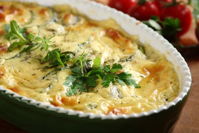 филе любой морской рыбы – 800-900 гр. кабачки – 800-900 гр.; сыр тёртый («костромской», «российский», «пошехонский» или другой) – 100-125 гр.; майонез – 4 ст. ложки; сметана – 4 ст. ложки; яйцо куриное – 1 шт.; мука пшеничная – 2 чайные ложки; мелко порезанный зелёный лук – 2 -3 ст. ложки; соль, масло, мука для панировки кабачков и рыбы, перец чёрный молотый, лимонный сок – по вкусу. Приготовление: Кабачки порезать кружочками толщиной примерно в половину сантиметра, запанировать с двух сторон в муке и порциями обжарить с двух сторон в горячем растительном масле. Рыбное филе разрезать на куски среднего размера, посолить, поперчить молотым чёрным перцем, немного сбрызнуть лимонным соком и запанировать в муке, после чего быстро обжарить с двух сторон до румяной корочки. Форму для запекания смазать растопленным сливочным маслом и слегка присыпать мукой. Выложить в виде «чешуи» обжаренные кабачки, на кабачки положить обжаренные куски рыбного филе.