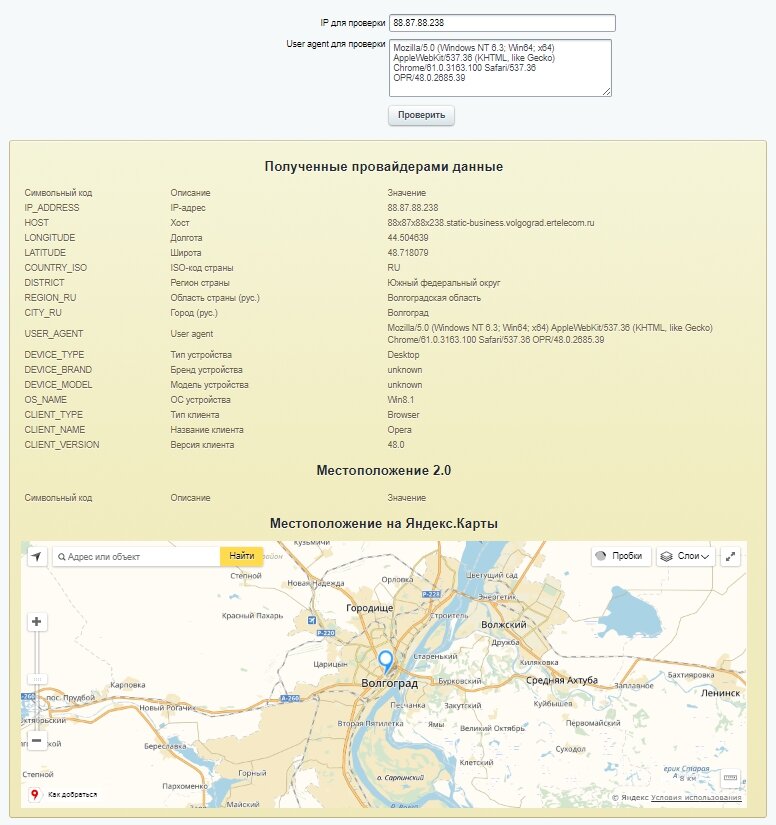 Она позволяет быстро протестировать все доступные гео-базы на разных IP-адресах.