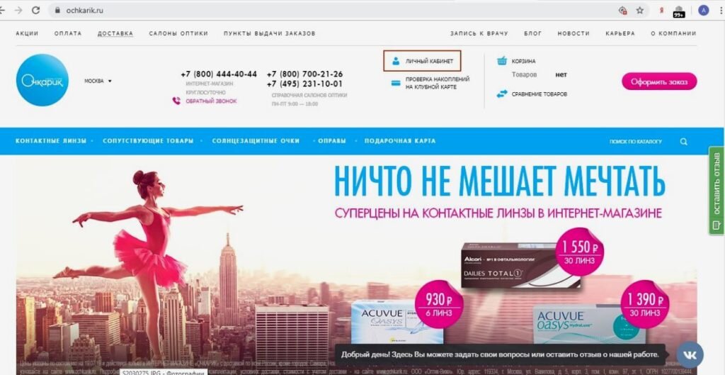 Интернет-магазин «Очкарик»: личный кабинет, заказ, доставка и условия возврата