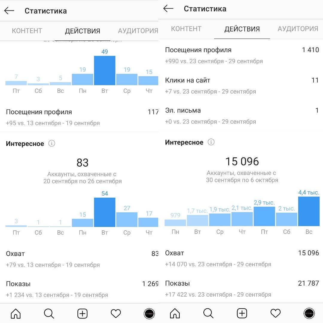 Изменение показателей статистики аккаунта за первую неделю работы: 1. Была определена и собрана база целевой ау