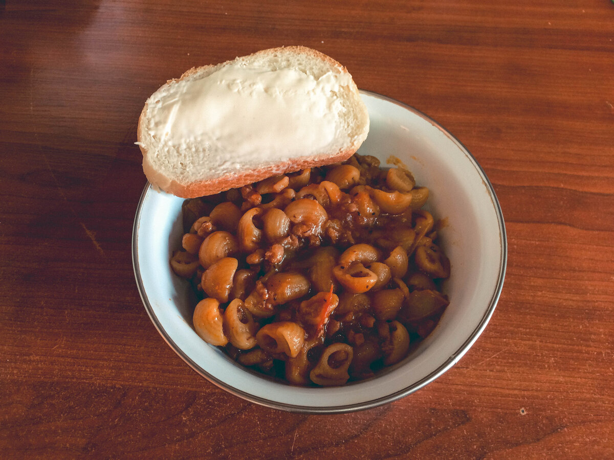 Доброго времени суток! Это мой первый рецепт, когда я использовал вино в готовке. Вино довольно затратный ингредиент, но когда вы добавите его в этот рецепт, получится вкуснейшее блюдо. Этот красный соус - один из самых вкусных соусов что я ел. Вы правда должны приготовить этот рецепт! Обязательно ли вино в рецепте ? Если вы хотите чтобы это блюдо было настолько вкусным, насколько это возможно, да. Могу ли я добавить сыр ? Да вы можете добавить сыр в кастрюлю, или в тарелку когда будете греть в микроволновке. Какую посуду использовать ? Подойдет любая кастрюля с толстым дном, для равномерного приготовления. Оставшуюся бутылку вина нужно распить вместе с едой. Ингредиенты Пошаговые фото Как приготовить Макароны с фаршем 18+ Начните с нарезания кубиками лука и мелко нарежьте чеснок. Добавьте их в кастрюлю вместе с маслом и обжаривайте на среднем огне до тех пор, пока лук не станет прозрачным. Пока обжаривается лук, нарежьте перец кубиками. Как лук станет прозрачным, добавьте перец и о