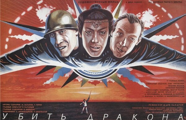 Чисто формально фильм Захарова «Убить дракона» снят по пьесе Шварца. Но – именно формально. Шварц написал добрую светлую сказку. Захаров, сохранив сюжет, переписал почти все реплики и у него получилась мрачная тяжелая история о человеческой низости и подлости. Странствующий рыцарь Ланселот попадает в город, которым правит дракон. Он – тиран и деспот, ежегодно от забирает себе лучшую девушку города. Но жители не ропщут: единственный способ избавиться от дракона - это завести собственного. И тогда Ланселот бросает дракону вызов. У фильма масса положительных сторон. Это отличная режиссура, и замечательные актерские работы. А. Абдулов в роли Ланселота прекрасен. Усталый некрасивый бродяга вдруг преображается и превращается в человека, который готов бороться со злом, рискуя своей жизнью. В. Тихонов в роли архивариуса Шарлеманя показывает каким трусом может быть вроде бы порядочный умный и добрый человек. О. Янковский вообще, в сущности играет 3 роли, ибо у дракона три головы и у каждой