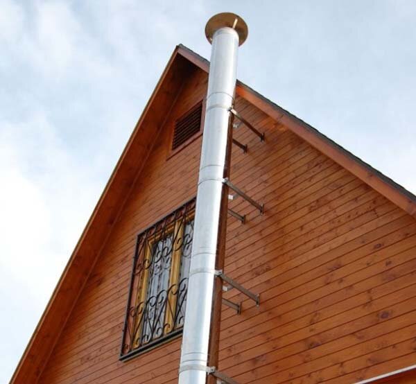 Для отвода продуктов сгорания от твердотопливных, газовых, дизельных котлов чаще всего используются кирпичные, керамические или стальные нержавеющие дымоходы. Несмотря на более высокую стоимость последних именно им чаще всего отдают предпочтение специалисты в вопросах организации систем отопления. Такие конструкции называют ещё «сэндвич» из-за их многослойной структуры. Она представляет собой две металлические стенки, между которыми проложена изоляция из минваты или перлитового песка. Для газовых котлов используются дымоходы из нержавеющей стали толщиной 0,5 мм, что позволяет выдержать температуру 400-450 С. Твердотопливные агрегаты комплектуются отводящими трубами из жаростойкой стали 1 мм, способной оставаться прочной при нагреве до 650 С. По сравнению с керамическими и кирпичными аналогами «сэндвич»-конструкции обладают несколькими неоспоримыми достоинствами: Среди основных элементов, необходимых для установки отводящей трубы, выделяют: На сайте ateplo.ru «сэндвич»-дымоходы предст
