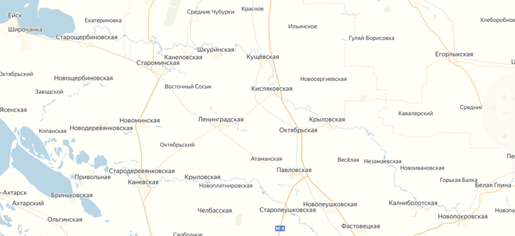 В этой точке река Ея познакомит байдарочника с уютным зеленым 8-километровым райцентром, достопримечательностью которого являются мемориал Воинам ВОВ, хороший проезд и 2 моста. Церковь, кино «Октябрь», ипподром, большой пятачок со сценой, куча магазинов и речушка с приободряющим прозвищем Веселая. Поток на извилистом речном фрагменте достаточно широк и обладает купальными местами. «Все бросай и приезжай!» – так поют про Крыловскую. Первые поселенцы на благодатных живописных землях появились в 1794 году. Из сторожевого селения в станицу это место превратилось в 19-м столетии. Излучины рек рассекают квартала по всем углам. Руины молочного завода привлекут тех, кто любит «брошенки». Это уже памятник СССР.