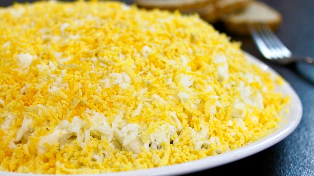 Быстрый слоеный салат из трех ингредиентов! Понравится своей простотой и вкусом! Быстро и сытно!