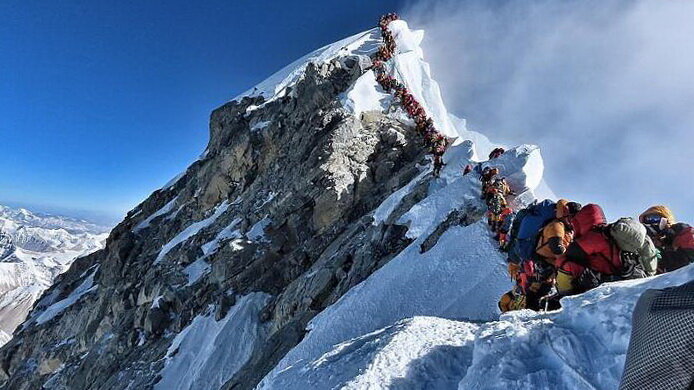 Огромные очереди скорее ассоциируются с походом в магазин Apple в первый день продаж новой модели телефона или посещением Мавзолея, но точно не с восхождением на вершину Эвереста. Тем не менее, гора стала настолько популярной среди альпинистов, что на подъём к её вершине выстраивается очередь в сотни человек. Сезон восхождения на Эверест обычно длится около месяца. По мнению непальских властей, скопления людей спровоцировали несколько смертей. На днях от истощения и обезвоживания погибли трих индийских альпиниста, среди которых были две женщины. Еще один из недавно погибших простоял в очереди более 12 часов и был измотан. О положении дел на Эвересте заговорили после того, как экстремальный спортсмен Нирмал Пурья, выложил в социальных сетях фотографию очереди в 300 человек на пути к вершине горы. Однако данная ситуация не останавливает поток желающих покорить вершину.