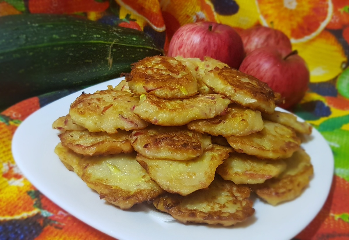 Всем привет! Сегодня приготовила на завтрак вкуснющие оладушки из яблок и кабачка. Лёгкие, нежные, нам всем очень понравились, поэтому делюсь с Вами этим простым рецептом. Готовятся они просто и быстро, а съедаются ещё быстрее, от этого и название - Экспресс. Кстати, для тех кто скептически относится к кабачками, их в оладушках не чувствуется совсем.