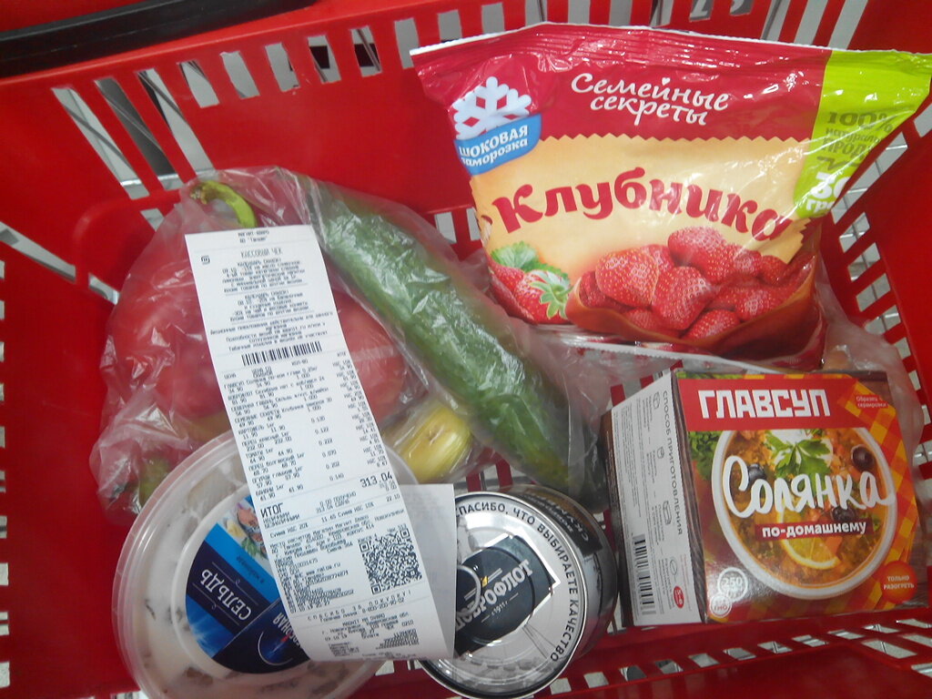Сегодня я не собиралась в магазин. Мне нужны были только огурцы и помидоры. Но потом я ещё вспомнила про то, что очень хочу суп, и решила зайти в "Магнит".