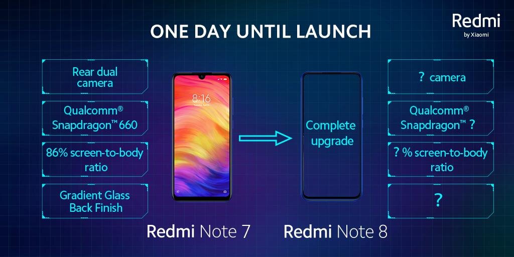 Заметно раньше ожидаемого. Xiaomi представит народный смартфон с квадрокамерой Redmi Note 8 в Европе уже завтра Дата дебюта подтверждена официально Компания Xiaomi рассекретила дату запуска Redmi Note 8 на международном рынке. Как сообщила сегодня Xiaomi на своей официальной страничке в социальной сети Twitter, до выпуска Redmi Note 8 осталось всего 24 часа. Таким образом, Redmi Note 8 будет представлен в Европе 8 октября. Сообщение сопровождается тизерным постером, где чётко прописано название новинки — Redmi Note 8. Ранее Xiaomi развернула в социальны сетях целуюкомпанию по продвижению модели как «народного» смартфона с кадрокамерой. Согласно последним утечкам предполагалась гораздо более поздняя дата выпуска Redmi Note 8 на международном рынке — только 24 октября. Изначально международный релиз Redmi Note 8 ожидался до конца сентября, но надежды не оправдались. Смартфон получил экран диагональю 6,3 дюйма, 48-мегапиксельную четверную камеру, однокристальную систему Snapdragon 66