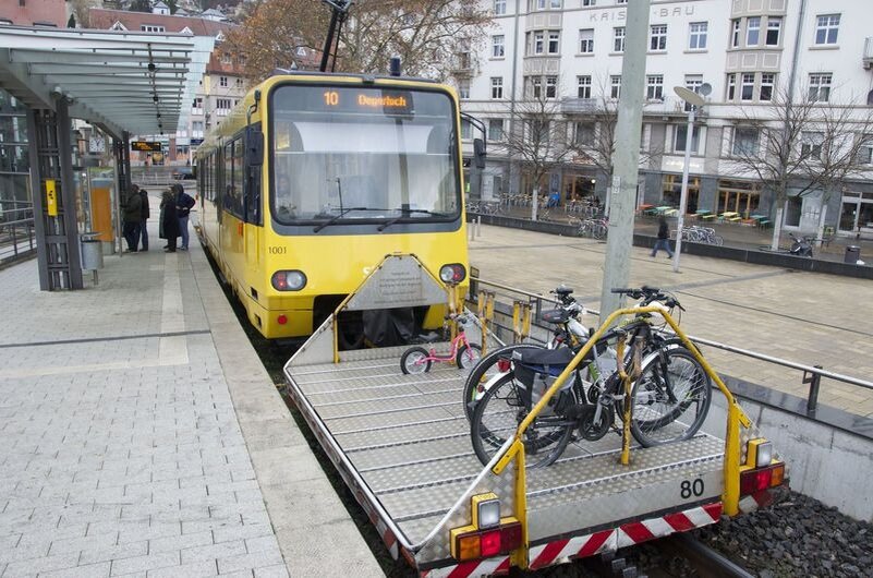 по Бакалинской до Менделеева — 61 метр. Чтобы велосипедистам было легче подниматься в гору, администрация города придумала специальную велоплатформу, которая цепляется к трамваю. Было бы здорово, если бы у нас сделали похожие платформы для трамваев и держатели для автобусов. Город стоит на семи холмах, ездить стало бы удобнее.