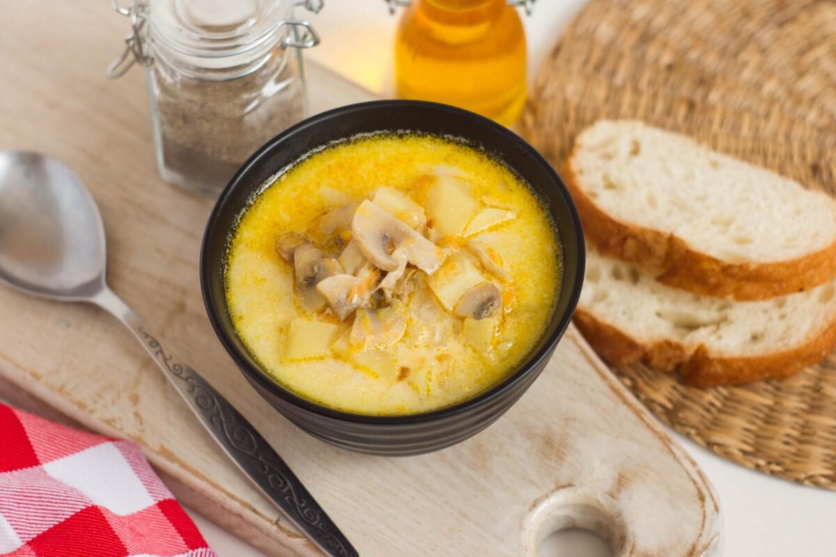 Добрый вечер, повар. Вот и рецептик подъехал, да рецептик не простой а рецепт про вкусный суп. На моем канале уже достаточно ТОПов, пора бы разбавить это парочкой рецептов. Так вот, решил я написать рецепт сырного супа, ибо данный суп уж очень вкусный и вряд ли он задержится у вас на столе, ну что же, готовьте кастрюли, ножи и половники и идем варить суп! Ингредиенты(на 5 порций): Пошаговое приготовление: 1. Подготовьте продукты, необходимые для приготовления сырного супа с плавленным сыром и грибами. Потребуется хорошо разваривающийся картофель, репчатый лук, немного моркови, соль по вкусу и плавленый сырок. Плавленный сыр нужно брать очень хорошего качества, чтобы он как следует растворился в супе. Низкокачественные сырки могут остаться в не растворенном виде, небольшими кусочками. 2. Картофель промываем, чистим и нарезаем небольшими кусочками. Нам нужен вкусный, насыщенный отвар, поэтому заливаем измельченный картофель чистой холодной водой, добавляем немного соли и доводим до
