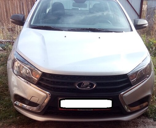 Получилась вот такая работа. Краска конечно не сильно подходит по цвету к родной окраске Весты, но все же меньше бросается в глаза, чем черная полоса. И если сильно не присматриваться, то повреждение почти не видно, особенно на грязной машине.
