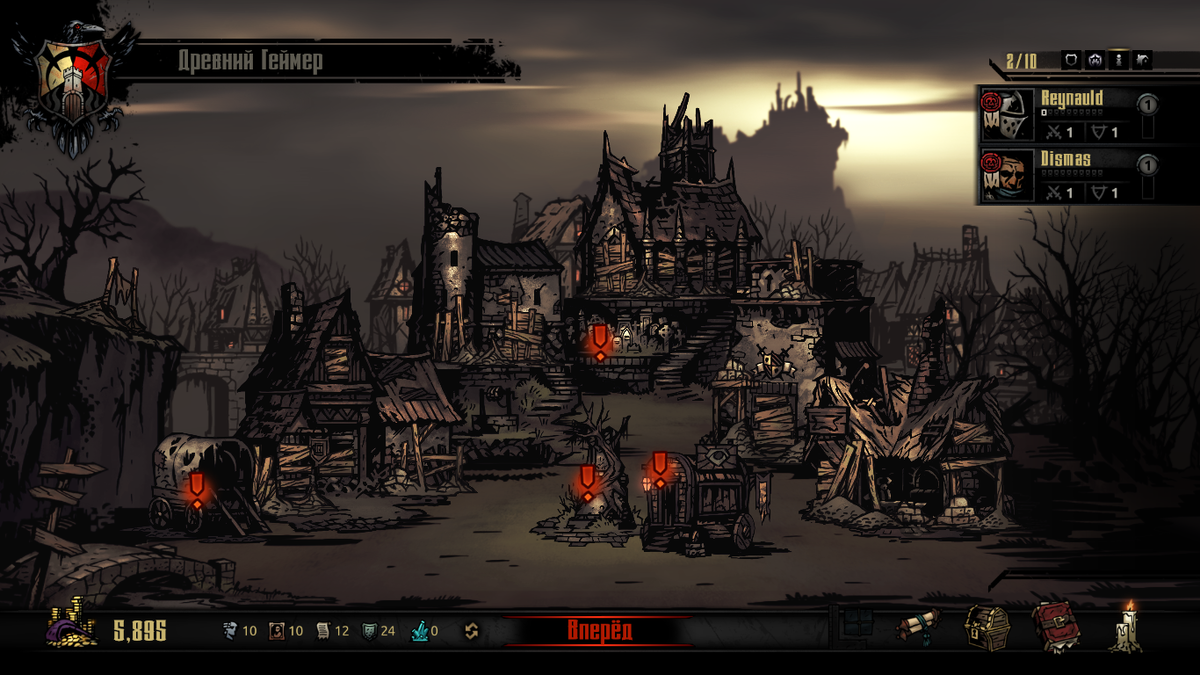 Мы пришли в город. Язык не поворачивается назвать это местом, где могут жить люди. Все обветшало, ставни забиты. Нужно будет приложить много усилий и денег, чтобы оживить эту местность. Боюсь, тех жалких монет, что у меня сейчас есть, не хватит. Оставил мне в наследство Предок, блин. А вдали виднеется поместье, но туда придется пробиваться с боем. Ничего, хорошая подготовка окупиться сторицей...наверное. Поэтому я нанял еще двоих: чумного доктора и весталку. Они уж саппорты, смогут вылечить, в случае чего, наших дохляков. Добавив их в группу, получил сообщение "Red hook". Красный хук? Прикольно. И отправил я новоиспеченную команду прочесывать руины. Естественно, снабдив всем необходимым с моей точки зрения: Ох, и не нравится мне этот мужик-снабженец! Ну, никуда не денешься в условиях дефицита людей. Да и содрал с меня почти все кровно заработанные деньги. А это совсем немного оказывается. Надеюсь, в руинах откопаем много сокровищ ( не зря же лопату дал). Жесть! В одном из закутков об