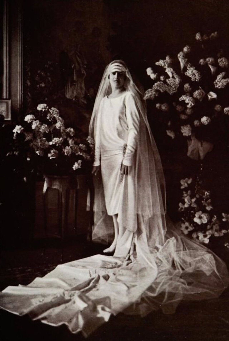 20-е годы были ознаменованы рождением стиля ар деко. Этот эклектичный стиль принес в европейскую моду африканские, египетские и китайские мотивы. В 1921 году состоялся первый в мировой истории конкурс красоты. В мире моды властвует Коко Шанель. Именно в это десятилетие выходят Chanel №5 и появляется маленькое черное платье. Была изобретена электрическая швейная машина. А придуманная Фордом поточная линия совершила переворот в легкой промышленности. Стал возможным массовый пошив одежды. Это в свою очередь потребовало унификации кроя. Чтобы одежда могла подходить как можно большему числу людей, крой становился свободно-прямым и геометричным Свадебная мода того времени вобрала в себя все основные тенденции моды повседневной. Невесты облачались в немного мешковатые платья прямого кроя, которые не отличались богатством декора. Непременным атрибутом стала очень длинная фата, обильно украшенная кружевом, бисером и цветами. Фата покрывала всю голову. Также образ невесты украшал особенно
