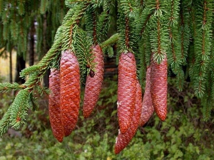 Крона Ели, обычно имеет вытянутую и прямую коническую форму, но на малых высотах она может стать немного расширенной. Он может достигать 40 метров в высоту (для взрослых особей) и около 80 см в диаметре стебля. Именно последний является тем элементом, который дает дереву свое название благодаря своей окраске. Главные ветви этого дерева-те, которые придают определенную форму кроне и поэтому обращены вверх, в то время как второстепенные свисающие. Листья игольчатые и типичные для хвойных, они бледно-зеленые по происхождению, но становятся красивого темно-зеленого цвета и очень заостренные при созревании. Репродуктивные органы хорошо представляют собой каноны голосеменных растений. Распространение этого дерева и последующее укоренение происходит от еловых шишек, внутри которых заключены семена. Еловые шишки представляют собой набор древесных чешуек, которые свисают с растения до достижения им зрелости, после чего падают на землю, раскрываясь и выпуская свое содержимое в окружающую сре