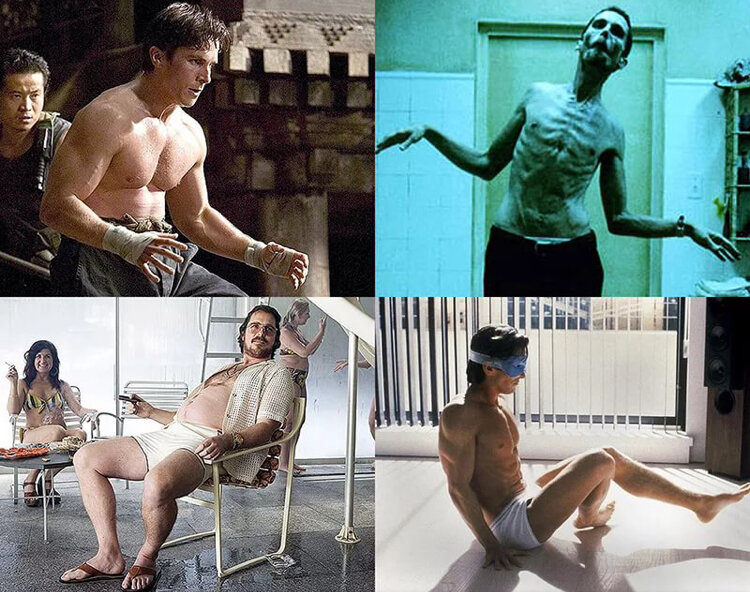 Но то, что творил со своим телом знаменитый актер Кристиан Бэйл, не поддаётся никакой логике, перед его изменениями все что я написал сверху про изменения-просто блекнут. Его можно назвать рекордсменом по трансформации для фильмов. Актер худел до изнеможения, набирал лишний вес, а затем красовался грудой стальных мышц, и так по кругу. Для одной из последних ролей Кристиану пришлось набрать около 30 килограммов.