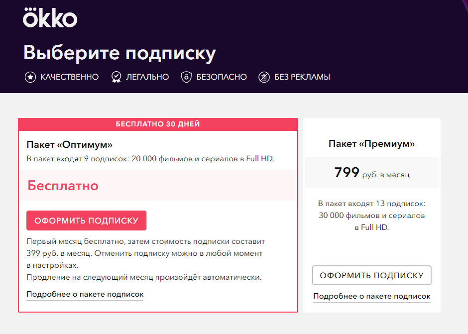 Погодка за окном шепчет: "Не выходи на улицу, не совершай ошибку, лучше посмотри сериалы и фильмы, что откладывал все лето" ;) Разве можно сопротивляться таким разумным доводам? Тем более есть такая замечательная возможность посмотреть их бесплатно, без лишнего поиска, рекламы и в отличном качестве! Примечание: в обоих кинотеатрах для активации промокода необходимо добавить карту. Можно ввести актуальную, но внимательно убрать все галочки на автопродление. А можно привязать любую бесплатную онлайн карту. Такая есть у того же Яндекса, активируется в пару кликов. 1. 30 дней подписки на пакет премиум Окко Для активации промокода нужно перейти на страницу: нажми на меня В вышедшее окошко введите промокод: 20071908 Некоторые пользователи отмечают, что периодически система сбоит и выдает то "неверный промокод", то не тот пакет. Нужно обновиться или попробовать позже. 2. Два месяца бесплатной подписки на Кинопоиск Примечание: промокод сработает только для новых пользователей, но новая почта с