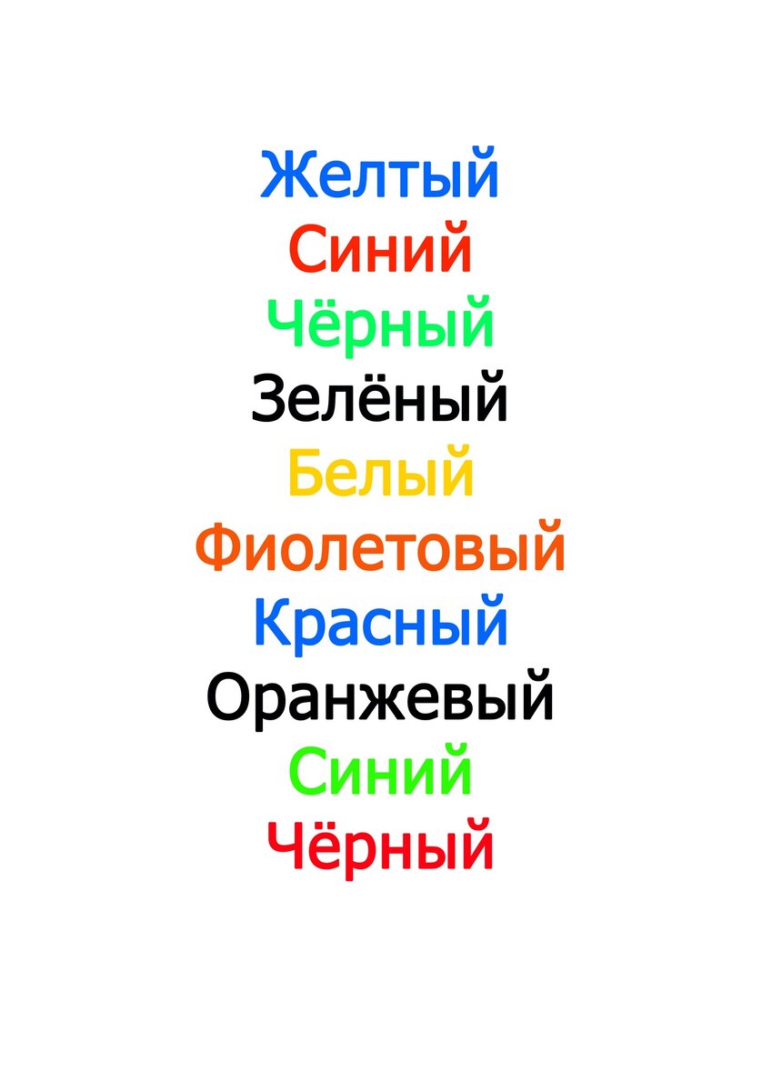 1.Посмотрите на таблицу и назовите цвет, не читая следующего слова...