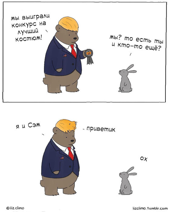 Вы когда-нибудь замечали, что в некоторых людях будто бы одновременно уживаются несколько личностей, часто не похожих друг на друга, с разными интересами и хобби? Например, суровый байкер с кучей татуировок может по вечерам заниматься вязанием, а молчаливый и хмурый полицейский - помнить наизусть все стихи Есенина и ходить в театральный кружок! Художница-иллюстратор из Лос-Анджелеса - Лиз Климо - тоже в какой-то степени может отнести себя к таким людям. Девушка посвятила много лет работе над знаменитым сериалом "Симпсоны" - довольно хулиганским и далеко не всегда детским мультфильмом. Но в свободное от работы время Лиз рисует совершенно другие иллюстрации - она создаёт добрые и безумно милые комиксы о говорящих животных, которые то и дело попадают в неловкие и забавные ситуации! Это комиксы, в которых нет ни намёка на пошлость или грубость - только светлый юмор и приятная рисовка. Изначально эти комиксы создавались как хобби, но на данный момент это уже давно переросло в нечто большее