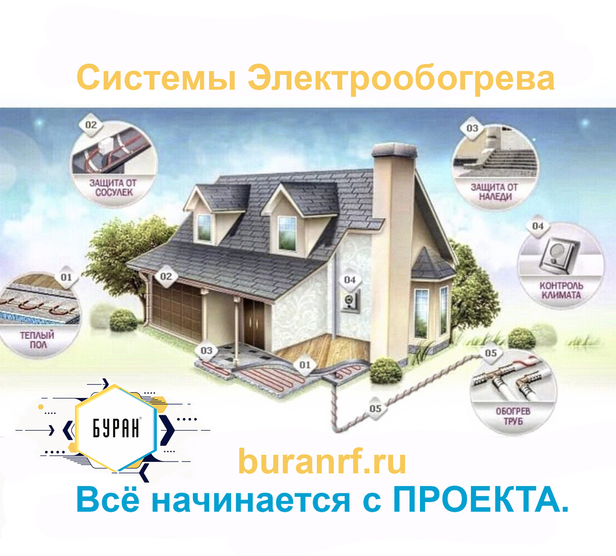 Электрообогрев Все начинается с проекта! Доверьте решение Вашего вопроса профессионалам: 1. Собираем исходные данные об объекте, который нужно обогреть 2. Выезжаем на объект для обследования. 3. Подбираем оптимальное решение «цена/качество» Вы получаете полностью готовый проект: с чертежами, инструкциями по монтажу, описанием и алгоритмом работы системы, подробной спецификацией оборудования. Проекты выполняем для любых видов объектов: гражданских, промышленных, военных! Более подробно ознакомиться со всеми «нюансами/ вариантами» разработки проекта можно на нашем сайте. Подробнее на нашем сайте www.buranrf.ru или по телефону: ☎️8 (383) 280-42-27