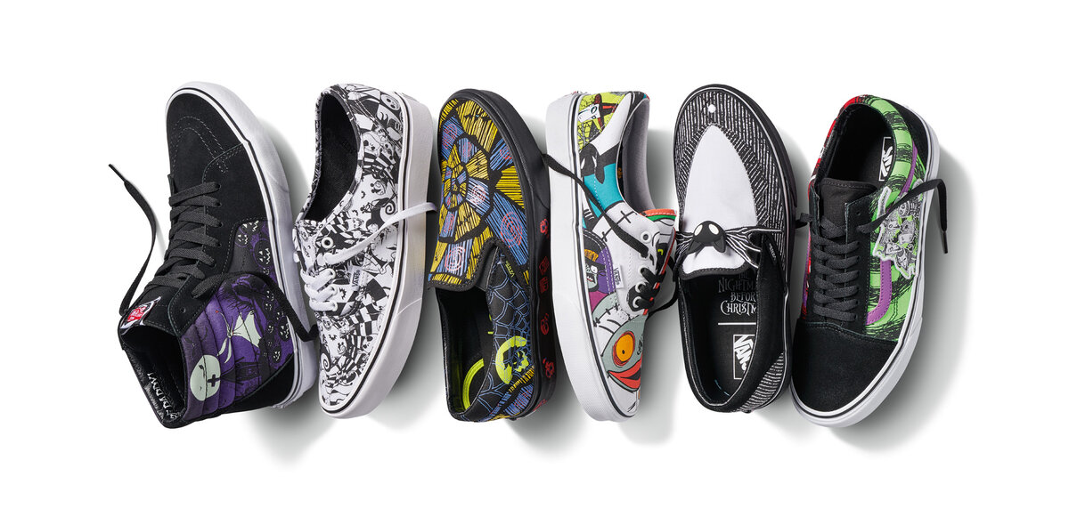 Этой осенью Vans подготовил специальную коллекцию, вдохновленную анимационным фильмом Disney «Кошмар перед Рождеством». Дизайнеры бренда с особым вниманием отнеслись к героям и разработали 10 моделей обуви и дополнили линейку одеждой и аксессуарами, которые повествуют о разных сценах фильма. Знаковая сцена, когда Джек поет скорбную песню, представлена на кедах Sk8-Hi, где каждая из четырех сторон модели рассказывает о прогулке Джека через кладбище городка Хэллоуин. Завершает все надпись «Nice Work, Bone Daddy» на внутренней стороне язычка. Рисунок на толстовке Jack Pull Over Hoodie продолжает эту тему, здесь легко узнаваемый холм городка Хэллоуин выполнен в культовом паттерне Checkerboard.Среди других сцен и героев, вдохновивших дизайнеров – любовная линия между Джеком и Салли и призрачный костюм Тыквенного Короля. Все это получило свое воплощение в принтах на классических кедах Slip-On. Главная героиня Салли, творение доктора Финкельштейна, вдохновила Vans на создание обновленной пары