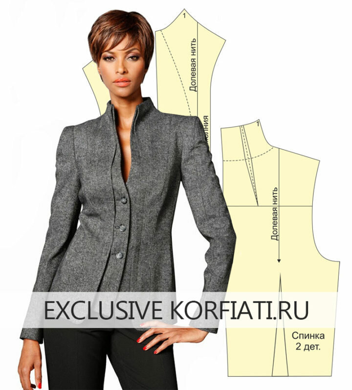 Цельнокроеные воротники очень часто используются дизайнерами при моделировании курток, жакетов, блузок и даже платьев. Такой воротник универсален и может иметь различную конфигурацию внешнего края — прямоугольный, со скошенным углом, скругленный, рельефный. В этом уроке мы подробно расскажем как смоделировать выкройку высокого цельнокроеного воротника-стойки и дадим советы по раскрою изделия. Перед тем, как приступить к моделированию воротника, мы создали художественный эскиз модели жакета. Представленное в статье моделирование выполнено до линии талии. Для моделирования выкройки высокого цельнокроеного воротника-стойки используйте базовую выкройку спинки и полочки изделия. В зависимости от изделия, которое вы планируете сшить, используйте базовую выкройку жакета или базовую выкройку платья с соответствующими прибавками на свободу облегания. https://korfiati.ru/2018/12/stand-collar-pattern/