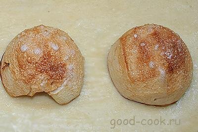 Положить на противень застеленный бумагой для выпечки. Сверху немного посыпать сахаром.