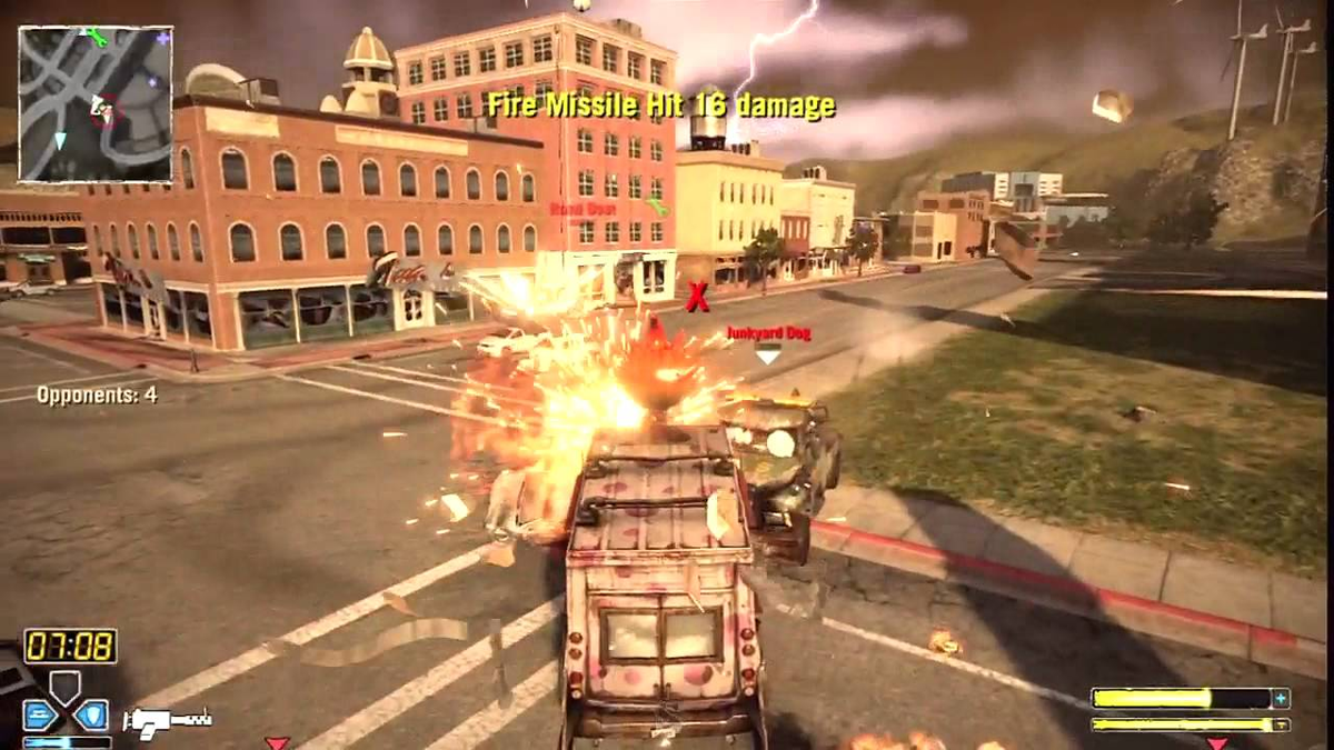 В своё время меня очень впечатлила эта прикольная игра. Смысл в том, чтобы победить всех соперников посредством арсенала оружий и набора способностей, который у каждой машины уникален. Также есть сюжетная кампания с боссами и разнообразными локациями. Я брал гоночный болид, который вызывал торнадо)