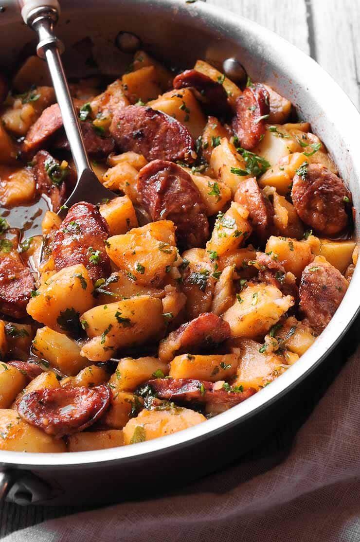 Снимите колбасу со сковороды и отложите в сторону.