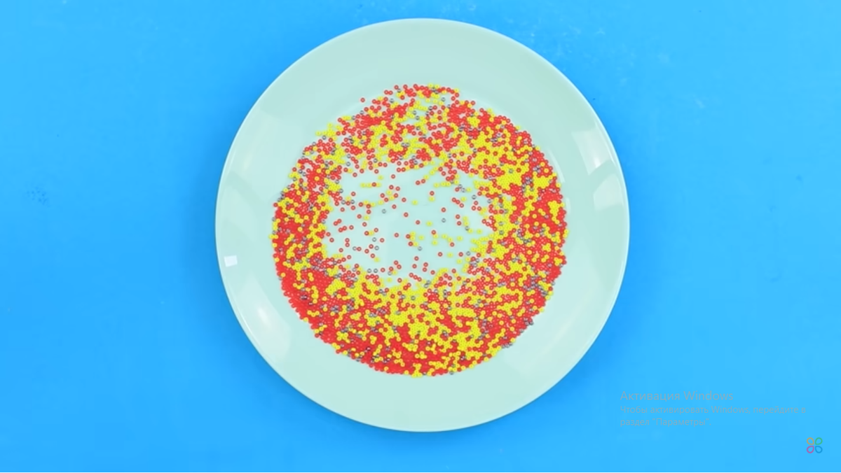 Затем накручиваем на катушку липкой стороной к верху закрепляем прокатываем бобину по тарелке, чтобы зафиксировать бисер на скотче.
