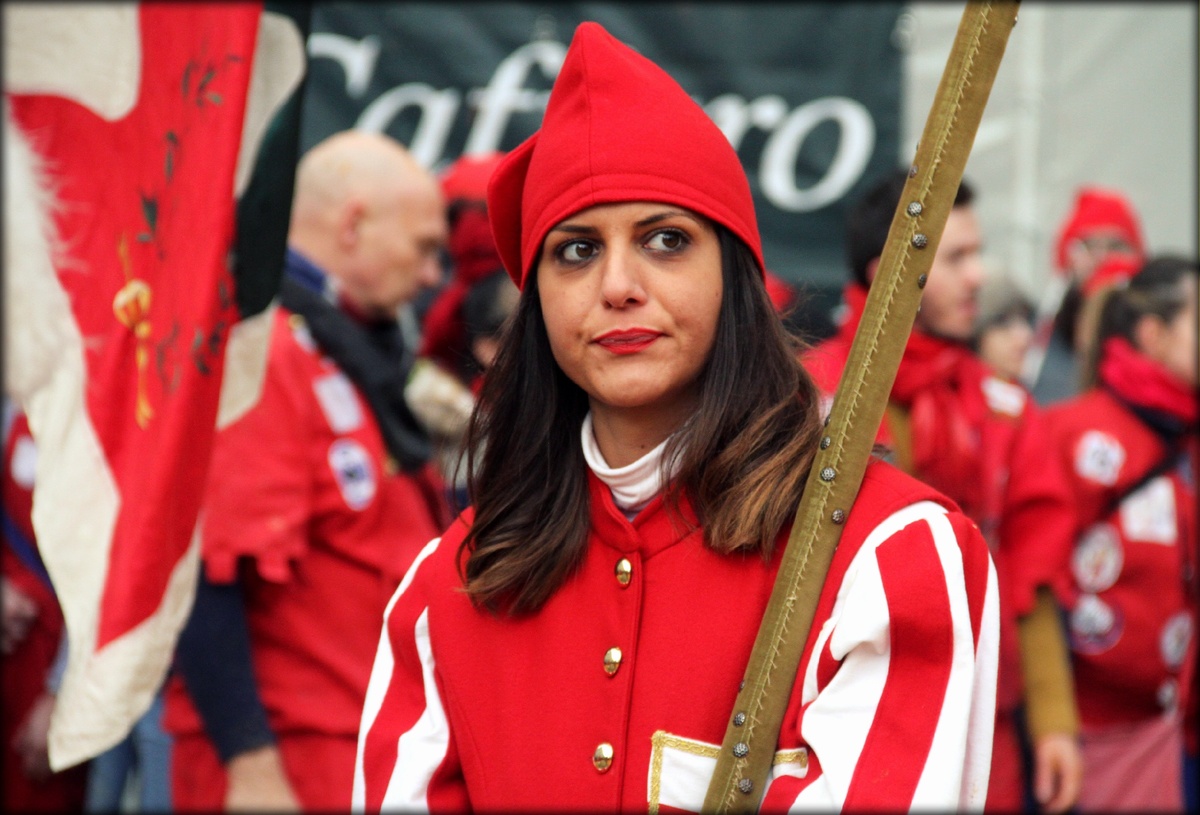 В городе Иврея раз в год проходит интереснейший карнавал под названием "Битва апельсинов". Удалось записать победную песню одной из команд.