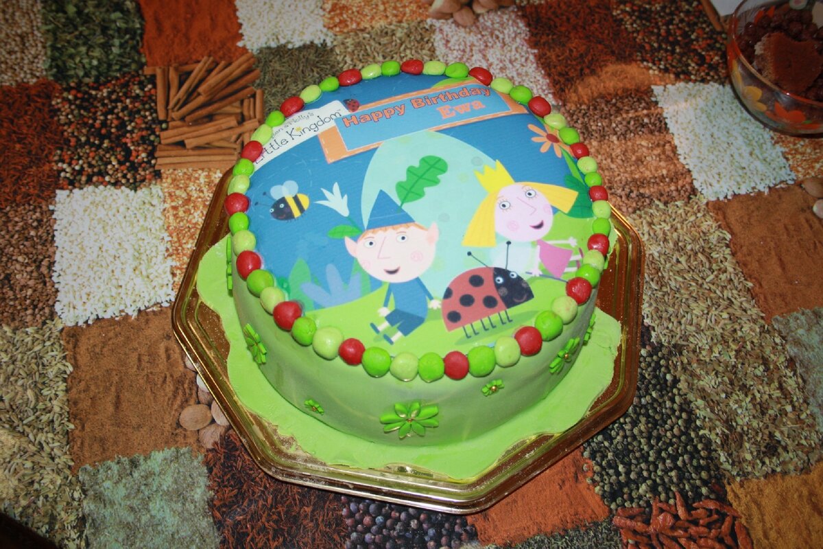 Итак, тортик на четвёртый День Рождения)) Тогда ей очень нравился мультфильм "Маленькое королевство Бена и Холли". Я обтянула торт мастикой и положила сахарную картинку, на которую мы добавили надпись "Happy Birthday, Ewa". Тогда для нас это был просто очень круто))) Это был 2013 год))