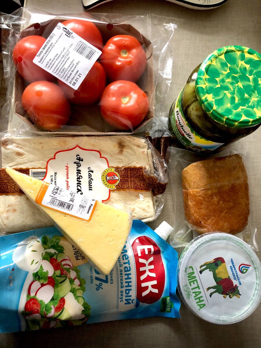 Далее, подготавливаем лаваш. Я разрезала пополам лепешку и сделала надрез, как показано на фото: