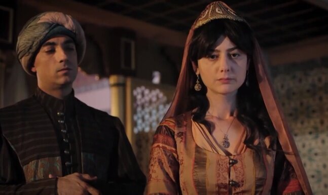 Тут их увлекательное мероприятие прерывает стук Джанфеды Хатун. Фахрие подсчитала что каких то 4 минут будет достаточно для устранения человека с синдромом сценарного бессмертия и отпустила Джанфеду! Стук даёт им время чтоб отдохнуть, Дильшах оглянулась, Нурбану отдышалась и Дильшах такая: