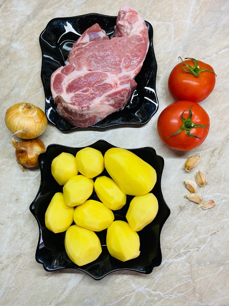 Ингредиенты для приготовления мяса с картошкой в духовке