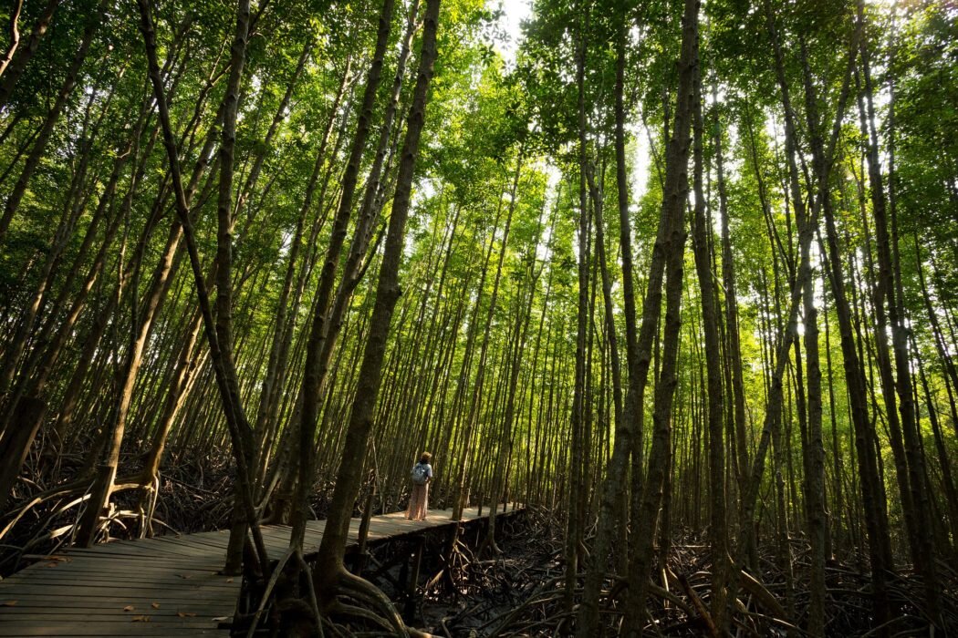 Мангровый лес состоит из более чем 20 видов вечнозеленых растений. Для своей жизни они выбираю бухты, защищенные от мощных ветров. Они приспособились к жизни во время постоянных приливов и отливов. Вырастаю такие деревья до 15 метров. Во время прилива у деревьев видны лишь макушки, а вот после отлива можно рассмотреть их причудливые корни.