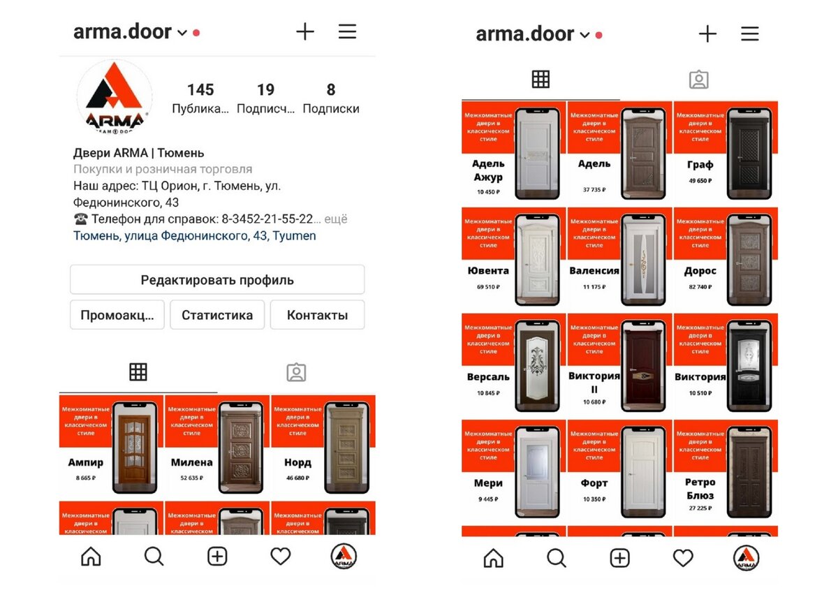 Клиент: https://www.instagram.com/arma.door - представитель компании Арма в Тюмени, занимается продажей стальных входных дверей в городе Тюмени.