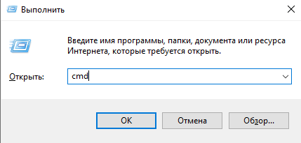 Нажимаю на сочетание клавиш Win + R, затем в поле ввожу запрос cmd, жму на клавишу Enter или кнопку ОК. Для этой операции права админа мне не понадобятся.