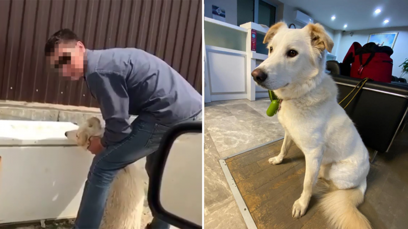 Момент встречи собаки, едва не погибшей от дверцы холодильника, с новой семьей можно