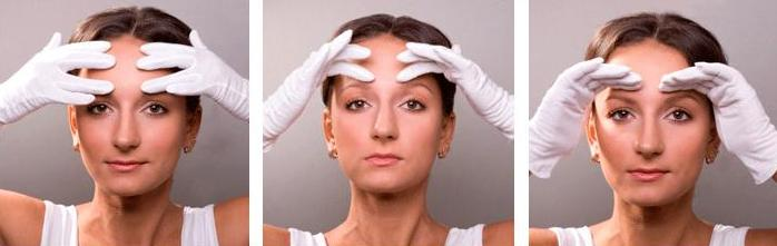 Пальцы располагаем на лбу веером, легко надавливаем на брови. Поднимаем и опускаем брови, словно удивляемся. Следим за тем, чтобы на лбу не образовывались заломы. Делаем 2 подхода по 15 раз.