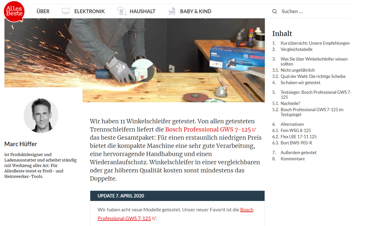 Лучшая УШМ, оригинал статьи на немецком языке - wallesbeste.de